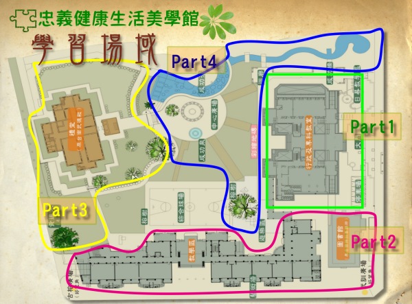 | 本課程規畫是以校園周遭環境為場域,分為四部份進行: |